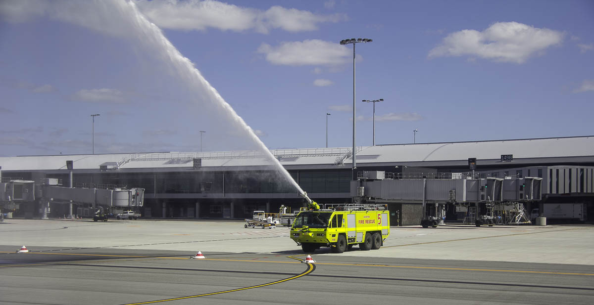 A water salute for the Inaugural flight