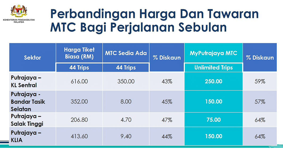 • MyPutrajaya Monthly Travel Card specifically for civil servants, especially those working or residing in Putrajaya